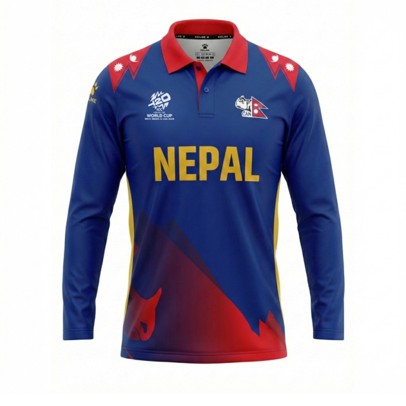 The KELME Nepal Cricket National Team Jersey is a high-performance, legally licensed garment that boldly symbolizes the national pride and vibrant spirit of Nepalese cricket by effortlessly merging authentic national iconography with sophisticated athletic design. Its distinctive style incorporates a dramatic gradient graphic on the body, depicting Nepal's gorgeous mountain landscape, and is prominently emblazoned with the Nepal Cricket Association (CAN) insignia on the chest. The shoulders, which include stylized images evocative of the pointed shape and insignia of the national flag, display further patriotic ornamentation. This jersey is the ideal option for supporters to support the Rhinos because it is made of specialized technical fabric for moisture management and quick drying, guaranteeing optimum comfort and outstanding performance.